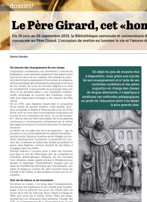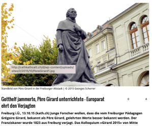 Gotthelf jammerte, Père Girard unterrichtete – Europarat ehrt den Verjagten, Kath.ch – Katholisches Medienzentrum (13 octobre 2015)